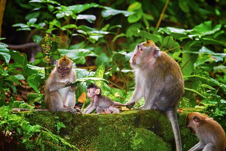 You’ll find cuteness by the bucket load at the Ubud Monkey Forest which is home to holy temples and hundreds of long-tailed Balinese macaques. You can watch the monkeys at close range and even feed them bananas that are sold on-site. Just keep a good grip on your valuables!