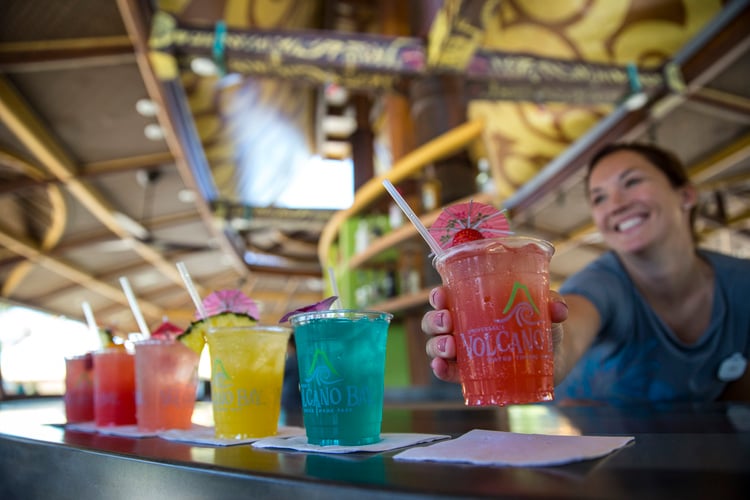 With all the excitement of Volcano Bay’s new rides, it would be easy to forget about all of the great food outlets. There’s a variety of restaurants in each area serving up classics burgers and tropical cocktails. Wave Village features the Kohola Reef Restaurant & Social Club, which serves sandwiches and the Dancing Dragons Boat Bar, where you can unwind with a frozen drink or two.