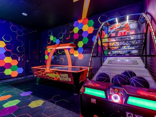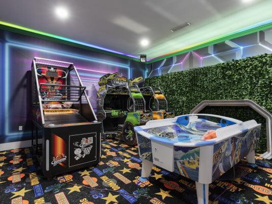 Vacation rentals with game rooms offer endless fun. Find incredible Orlando homes with arcade games, consoles, pool tables, table tennis, foosball, and more.